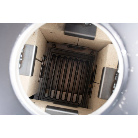 Piecyk posiada wewnątrz cegły szamotowe, które zapewniają odpowiednio długotrwałe trzymanie ciepła.