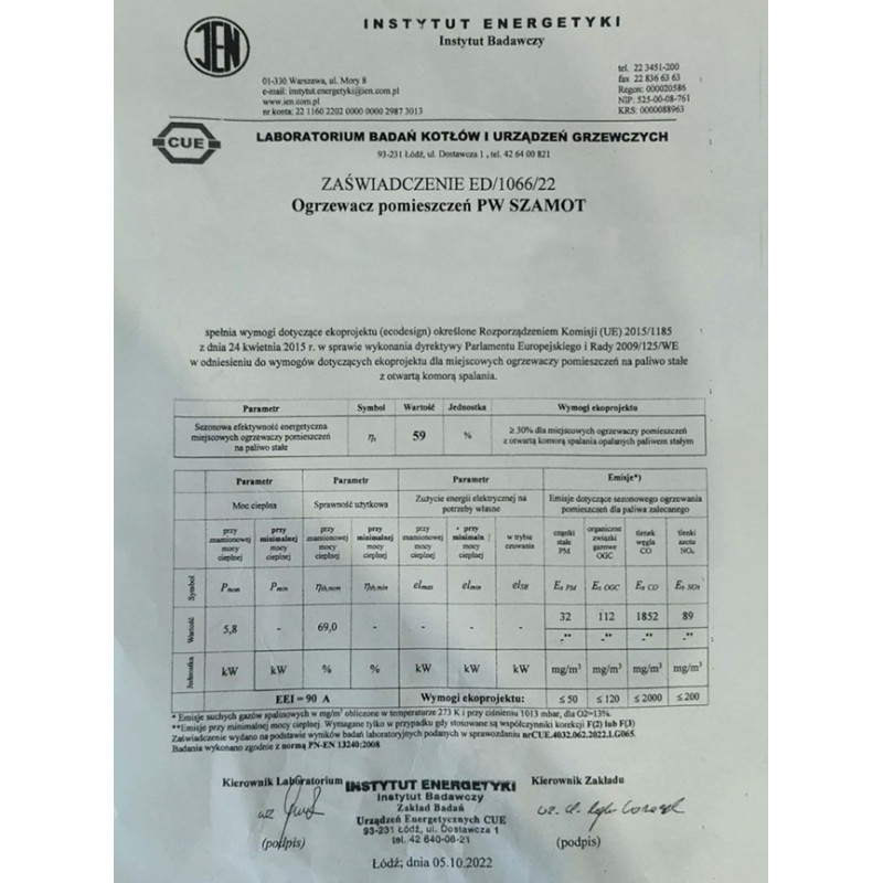 Wymogi Ekoprojektu od 1 stycznia 2022, które nasz piec w pełni spełnia: