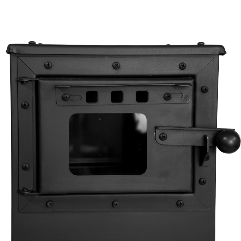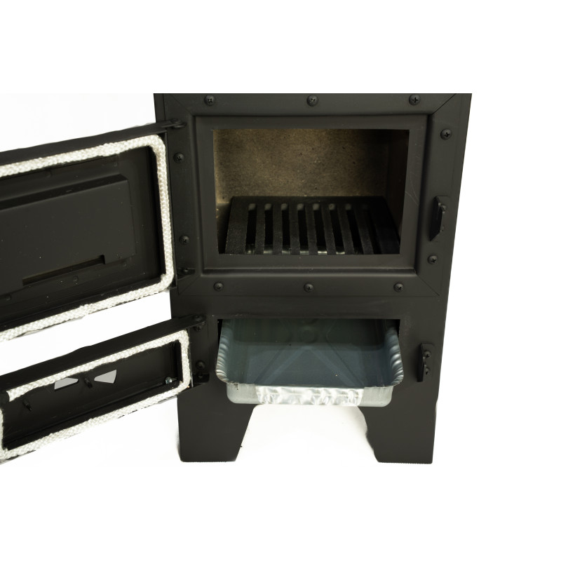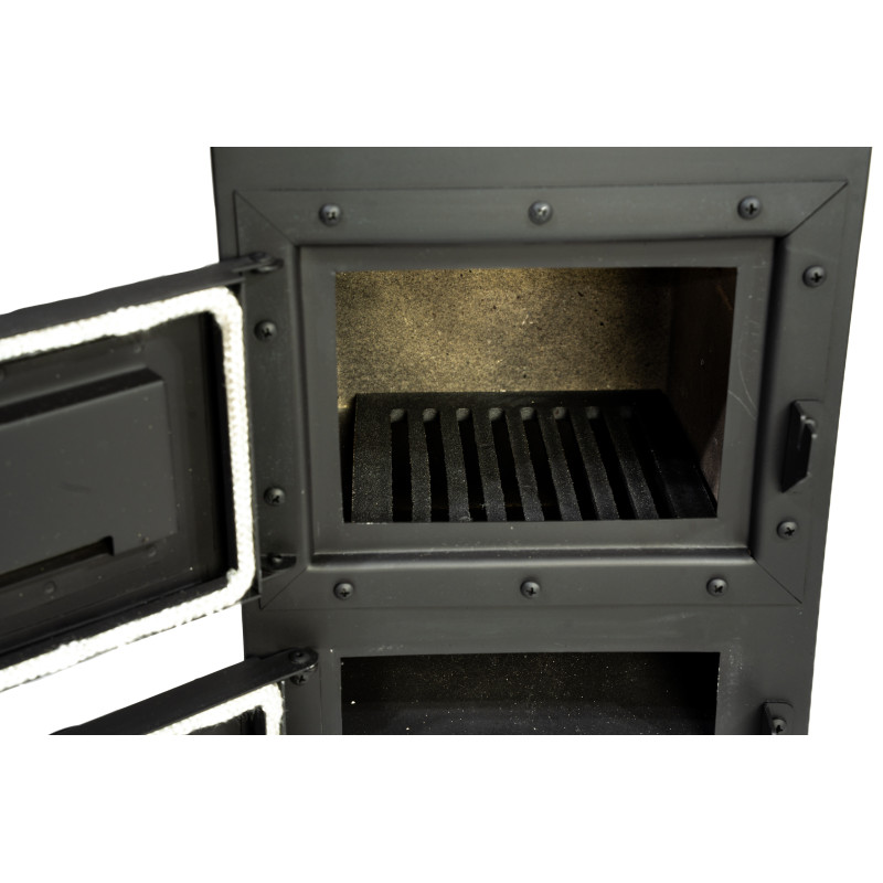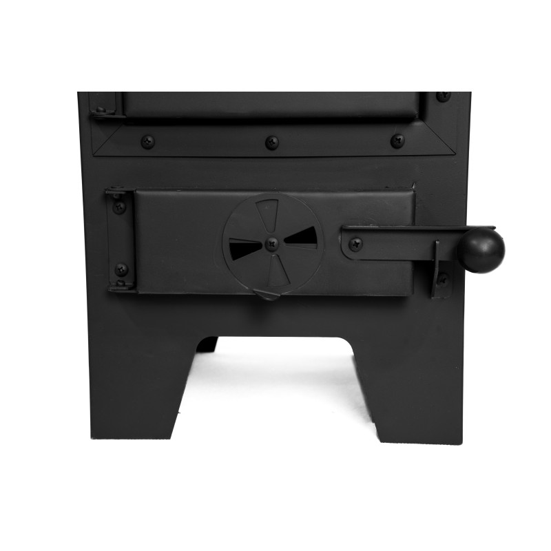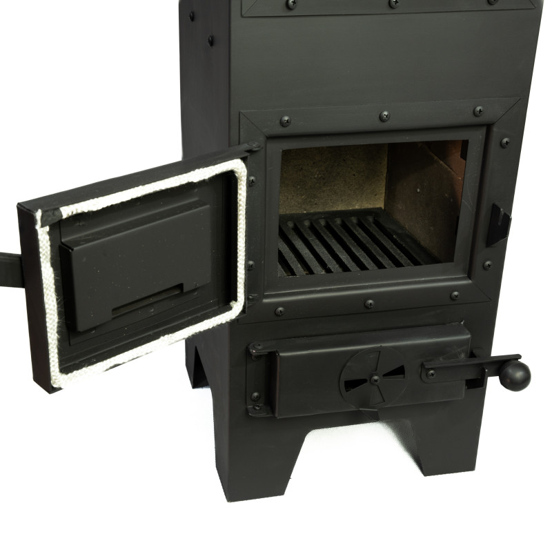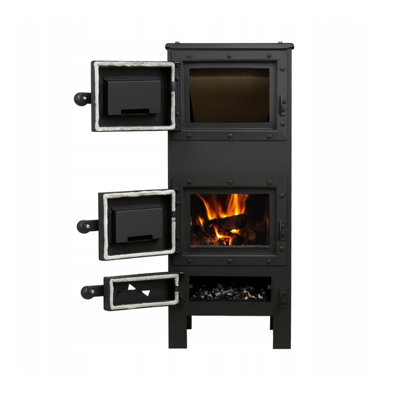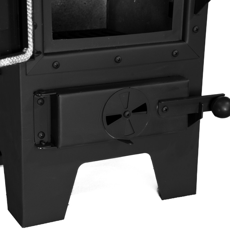 Drzwiczki pieca wyposażone są w regulowane wloty powietrza, które umożliwiają dopływ tlenu do spalania. Dzięki temu możesz kontrolować intensywność ognia i temperaturę. Dodatkowo drzwiczki są obłożone taśmą żaroodporną (sznurem uszczelniającym), co zapewnia większą szczelność, bezpieczeństwo i lepszą kontrolę nad spalaniem.