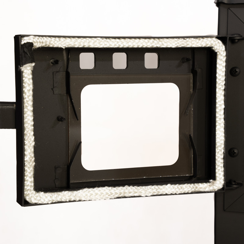 Dodatkowo, drzwiczki są obłożone żaroodpornym sznurem uszczelniającym, co zwiększa bezpieczeństwo i szczelność urządzenia.